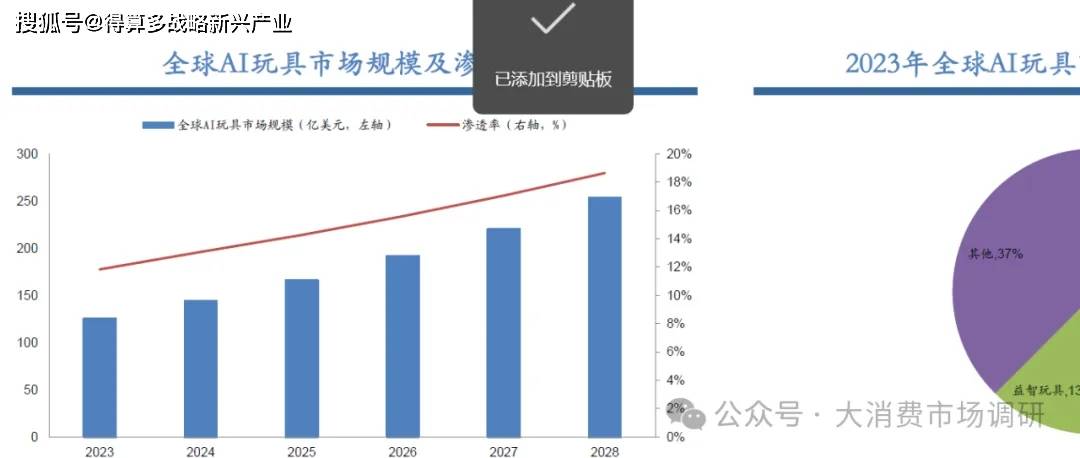 當(dāng)前AI玩具滲透率較低,未來有望快速提升。從全球來看,根據(jù)Frost & Sullivan和pmarket research數(shù)據(jù), 2023年全球玩具市場規(guī)模為1097億美元,全球AI智能玩具市場規(guī)模價(jià)值為132.5 億美元,AI玩具滲透率為12%。至2028年,全球AI玩具市場規(guī)模有望增長至253.5億美元,2023-2028年CAGR為15%,滲透率有望提升至19%。從中國來看,2024年為中國AI玩具發(fā)展元年,當(dāng)前仍處于市場早期,隨著相關(guān)廠商加速布局,AI玩具市場規(guī)模有望快速增長。