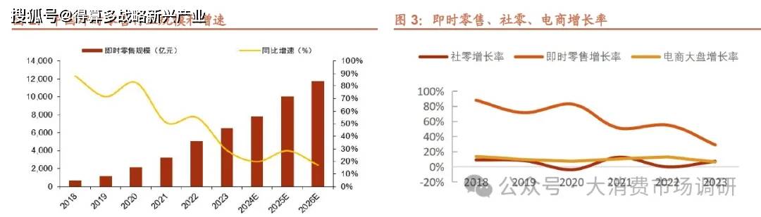 即時零售行業(yè)快速增長,萬億市場規(guī)??善?。據(jù)商務部研究院數(shù)據(jù),2023 年我國即時零售規(guī)模達到6500 億元,同比增速為29%,2018-2023 年行業(yè)CAGR高達57%,行業(yè)快速發(fā)展增速遠超社零及電商大盤,預計2025-2026 年規(guī)模有望突破萬億元。