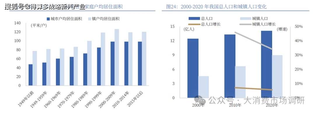 我國(guó)房地產(chǎn)的發(fā)展進(jìn)程中,由于我國(guó)過(guò)往人均住房面積以及人均住房套數(shù)較低,城鎮(zhèn)化率相對(duì)較低,在城市化持續(xù)推進(jìn)的進(jìn)程中,城市的樓市房產(chǎn)長(zhǎng)期處于供不應(yīng)求的發(fā)展階段,因此樓市機(jī)制歷史上主要以地定房、以房定人的模式發(fā)展。2020年,我國(guó)城鎮(zhèn)人口增速遠(yuǎn)高于總?cè)丝诘脑鏊伲刂?020年,根據(jù)我們的測(cè)算我國(guó)城鎮(zhèn)存量家庭戶(hù)平均居住面積約為102.55平米。其中2000年前建成的家庭戶(hù)建筑面積為88.99平米/戶(hù),2000年后建成的家庭戶(hù)建筑面積為106.39平米/戶(hù),即2000年前的戶(hù)均居住面積較小,城鎮(zhèn)居民購(gòu)房需求旺盛。隨著城鎮(zhèn)化進(jìn)程推進(jìn),城鎮(zhèn)新增人口同樣釋放購(gòu)房需求。